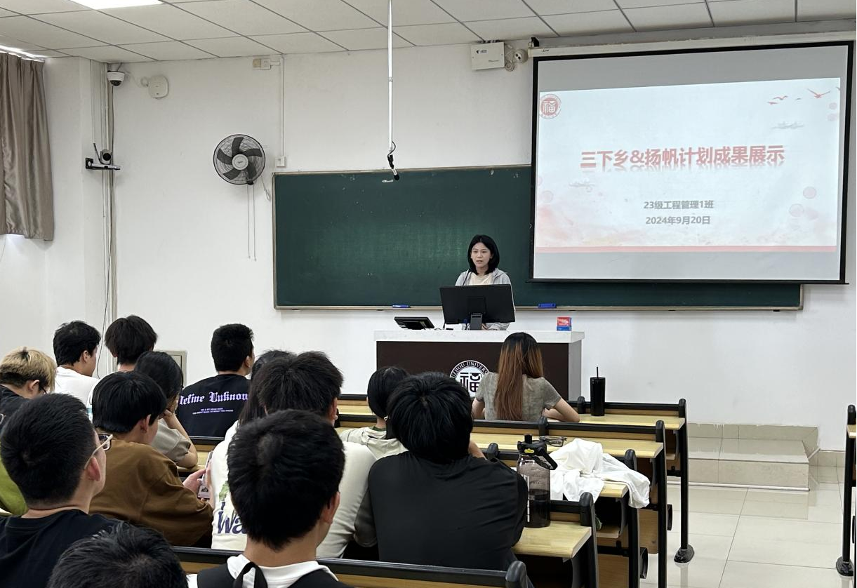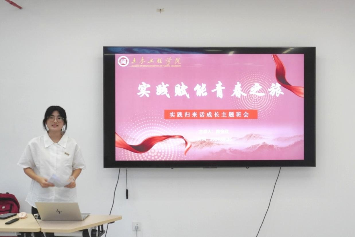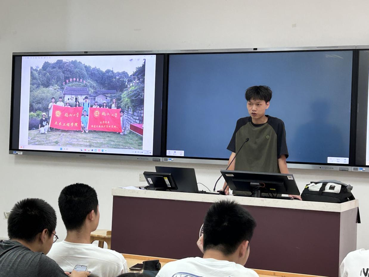 在班长的带领下,多名同学积极发言,分享了暑期社会实践、“扬帆计划”实习中的宝贵经历与深刻感悟,他们用脚丈量祖国大地,用心感悟国家建设。在宁德的实践画卷里,深入了解宁德市生态文明建设的实践经验;探寻非遗文化,传承非遗技艺,在木兰溪的生态文明建设和文化传承的历史长河中,更加坚信非遗文化是铸就中华优秀传统文化自信的基石;参与乡村支教,播下希望的火种,在莆田大洋,三明尤溪等地,用智慧与爱心点燃了孩子们的希望之光等。暑期经历更加坚定了土木学子对专业学习的认同,以实际行动回应习近平总书记的殷切嘱托,以无悔的青春铸就新时代青年的荣光篇章。会议最后,辅导员陶亮老师分享了参加班会感受,肯定与赞扬了投身实践的同学,并号召更多同学加入其中,在社会实践的大课堂中知行合一、以知促知、以行促知,争做有理想、敢担当、能吃苦、肯奋斗的新时代好青年。