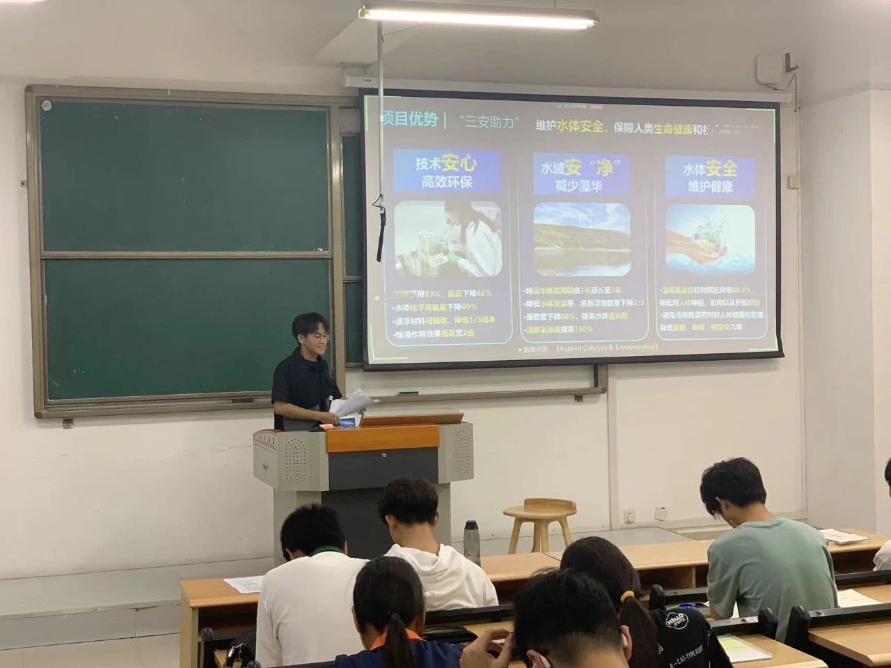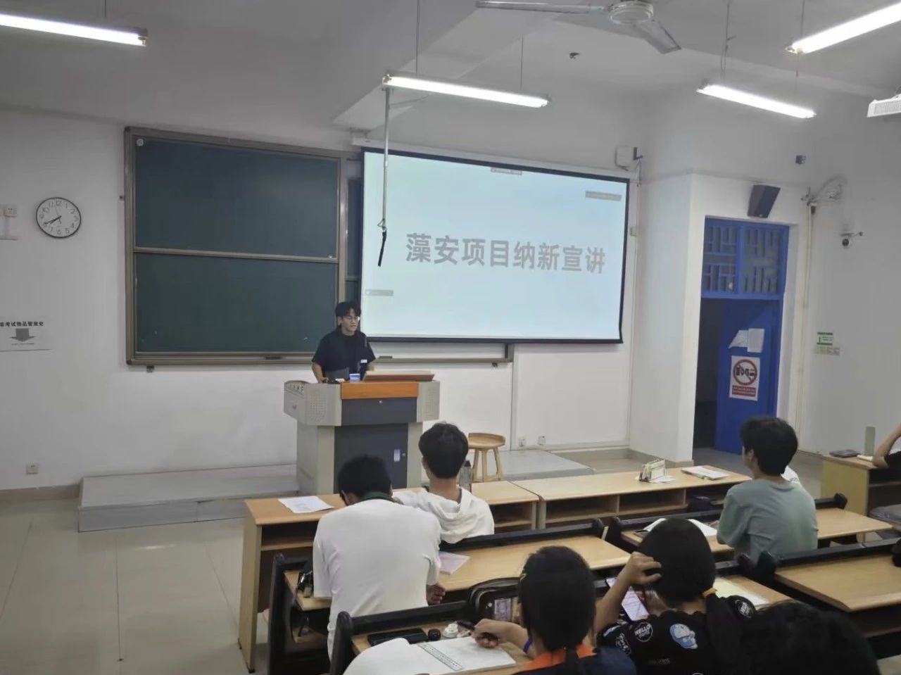 随后,由藻安项目团队负责人林易晓进行“藻安”项目的宣讲、路演。她指出,团队前身为“地管通”,曾荣获多项国家级和省级荣誉,包括挑战杯、互联网+、创青春等重量级双创竞赛的金奖、银奖,期待有领导力、同理心、综合能力强的同学加入团队,一起在产学融合的平台上扩宽思维广度、快速对接社会变化。