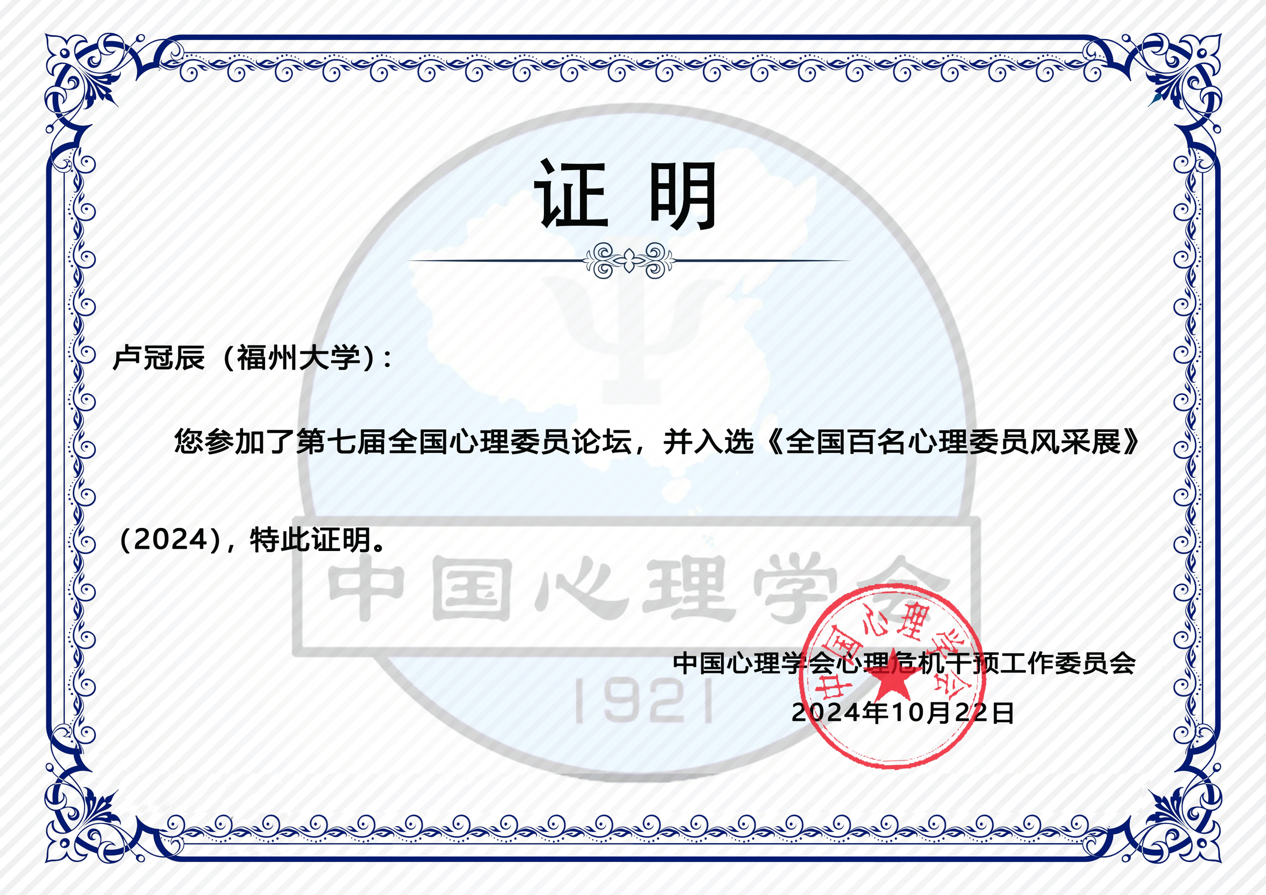 优秀心理发展部”称号,指导6名学生获绅士漫画