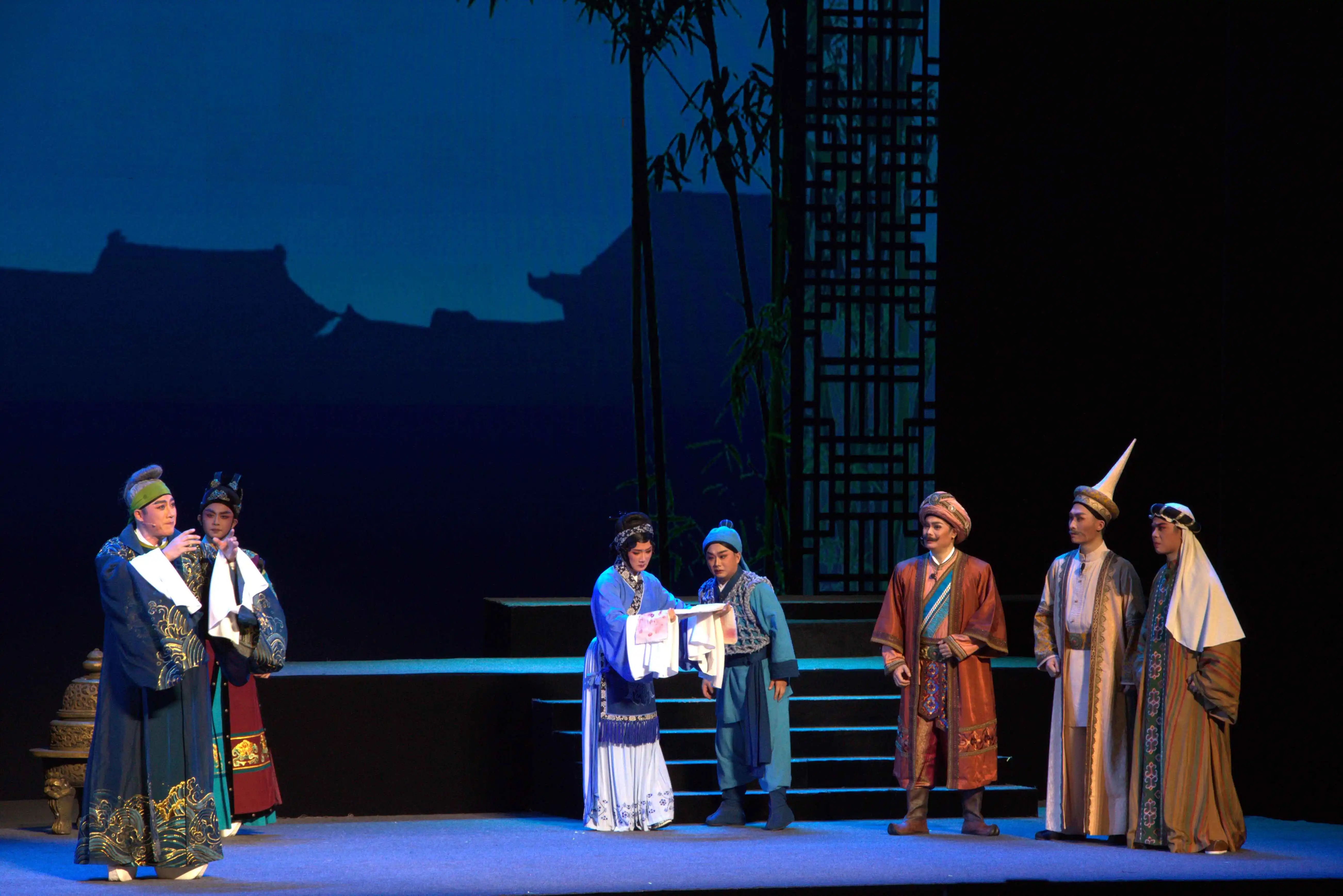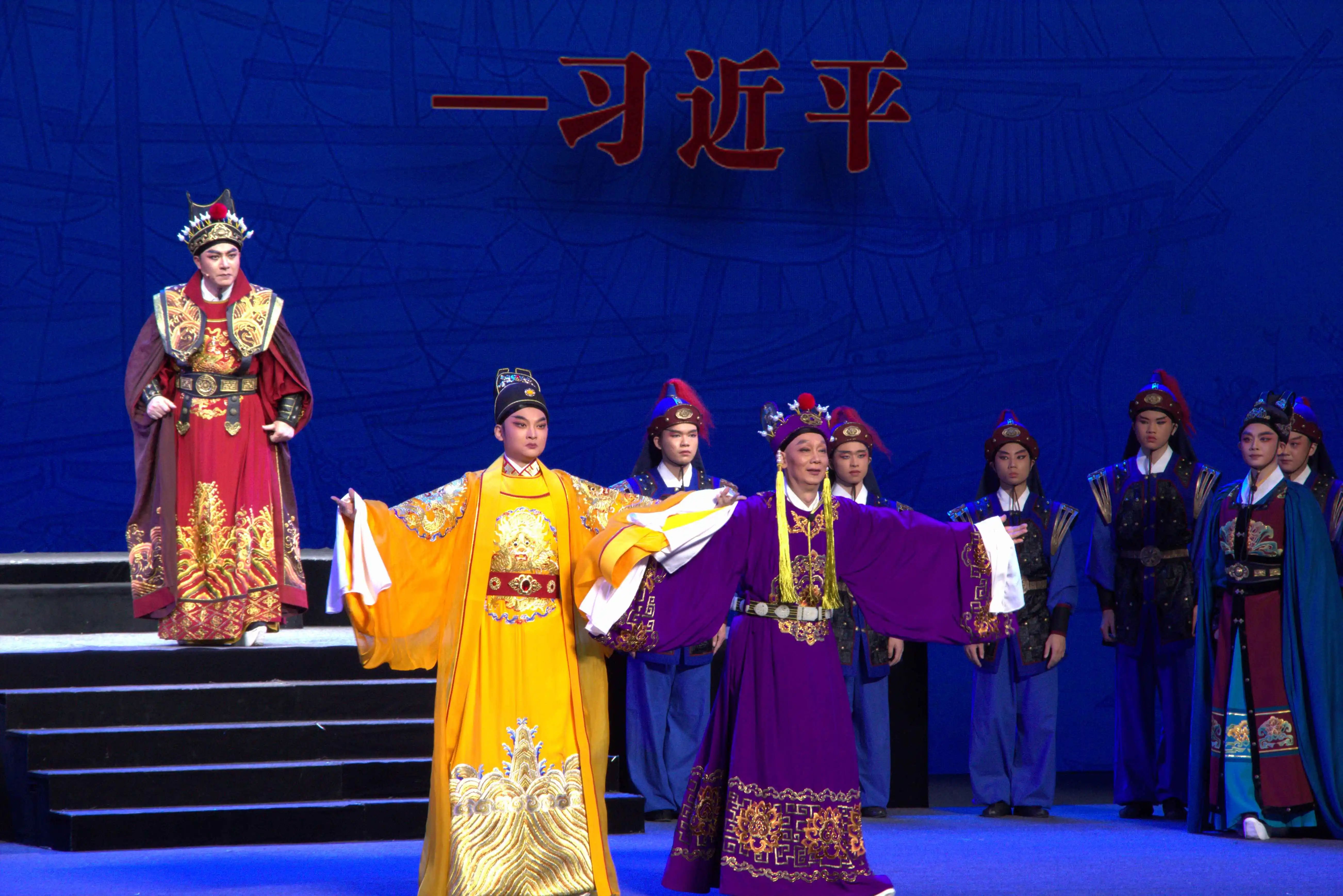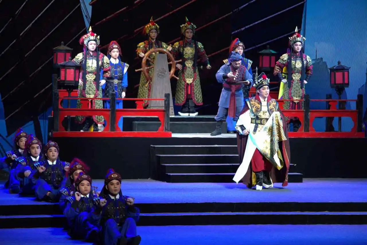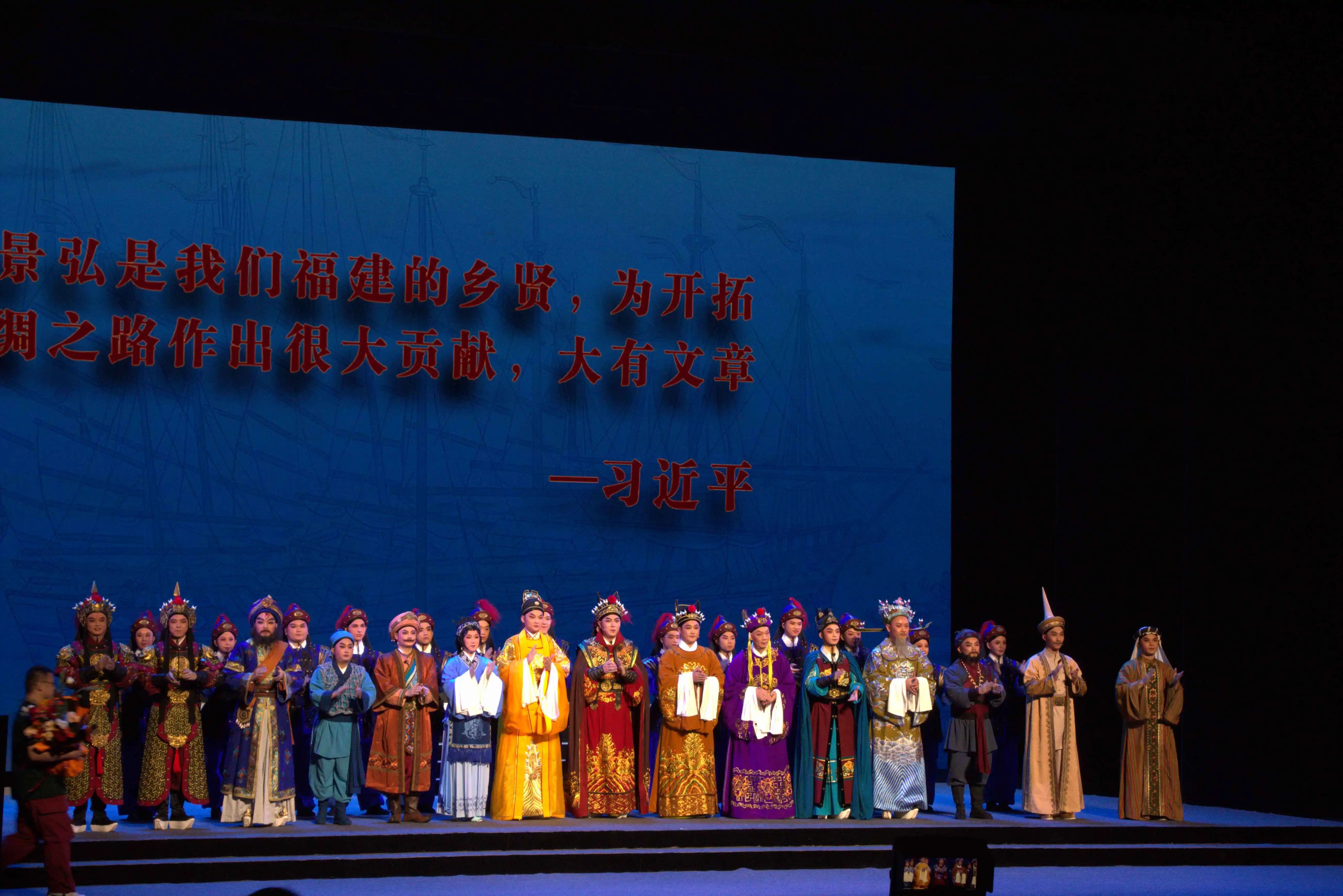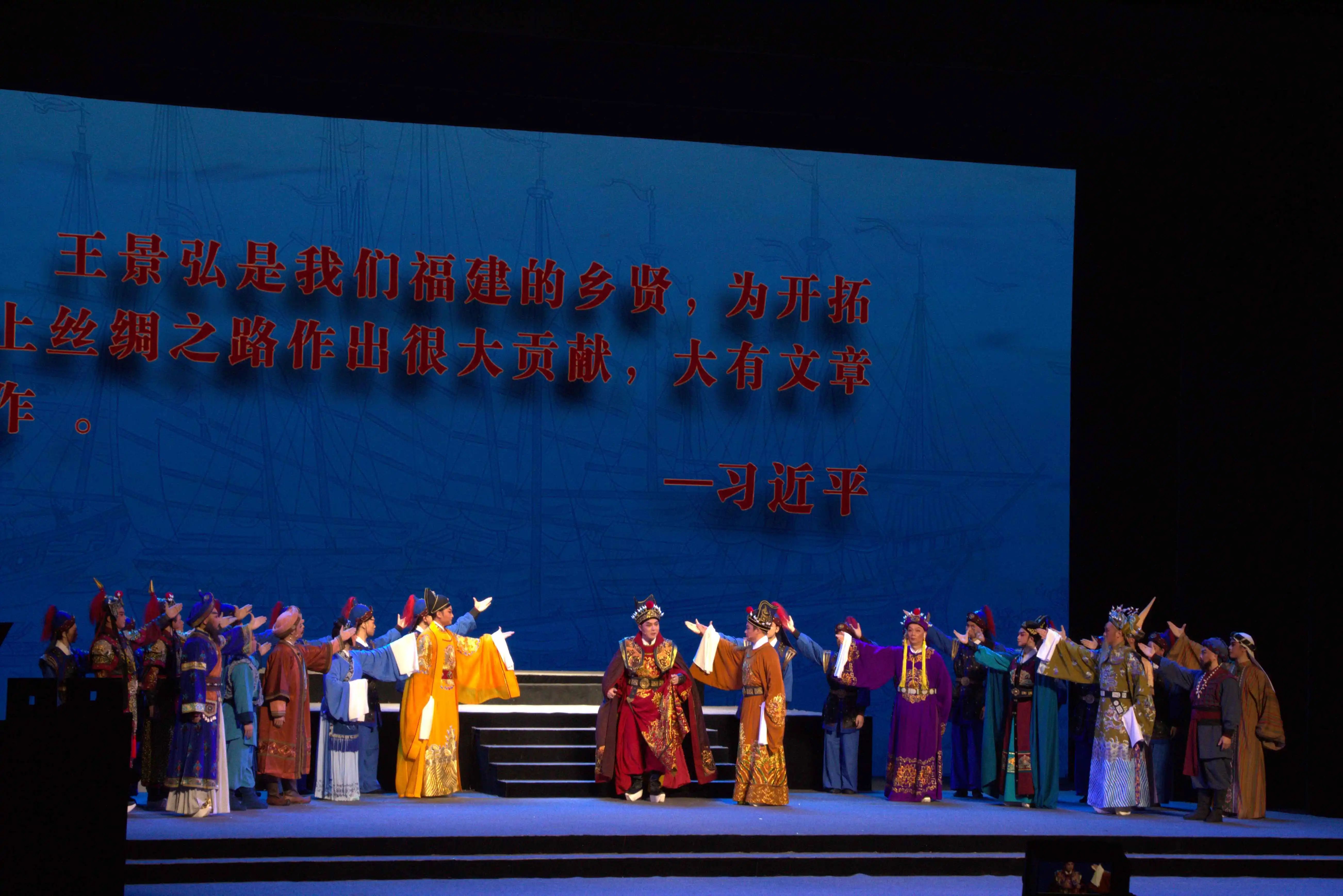 舞台布景宏大,服装造型精美,演员们的汉剧唱腔和表演技巧精湛,获得了在场同学们的高度评价。据了解,《王景弘》是第九届福建艺术节的参演剧目之一,筹备时间长达两年半,由多位国家级艺术家联手打造,龙岩市汉剧传习中心的国家一级演员李勇洪担纲,全剧时长110分钟,共有120名演职人员参与。不仅纪念了王景弘的历史贡献,也展示了中国古代对外开放和文化传播的成就,对于弘扬海丝文化、推动“一带一路”建设具有重要的现实意义。