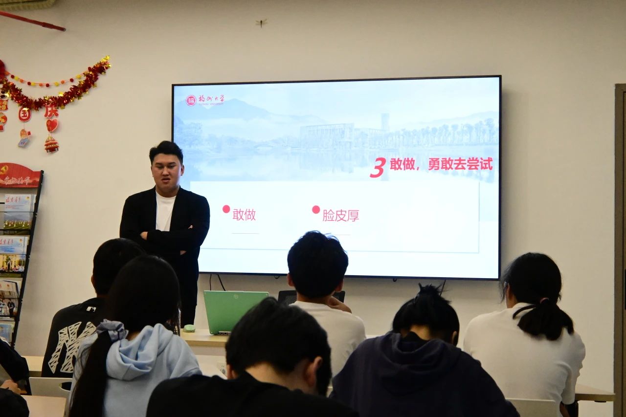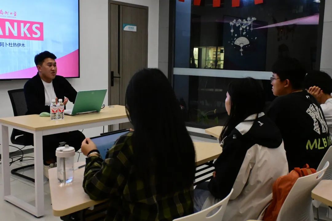 接着,阿卜杜热依木·阿卜力孜学长向大家强调了勇敢尝试的重要性。秉承着“胆大、心细、脸皮厚”的七字真言,走出舒适区,勇敢探索未知领域,是培养坚韧心性、促进个人发展的关键步骤。唯有敢做,方能突破自我;与其等待机遇,不如创造机遇。