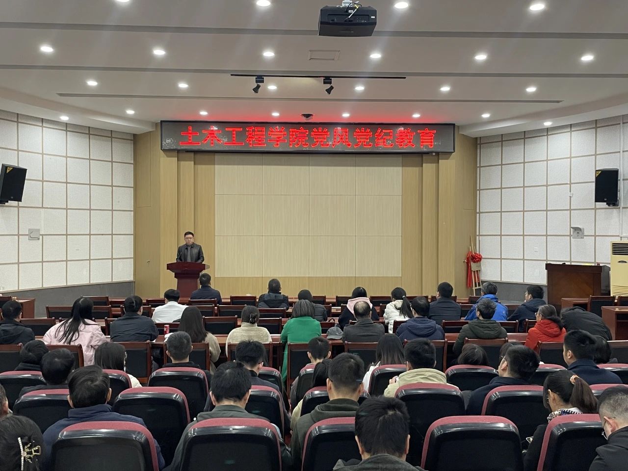 于一楼多功能厅召开党风党纪教育大会,组织党员集体学习违纪违法典型案例。会议由院党委书记吴唐风主持,学院领导班子、全体教职工党员参加本次会议。
