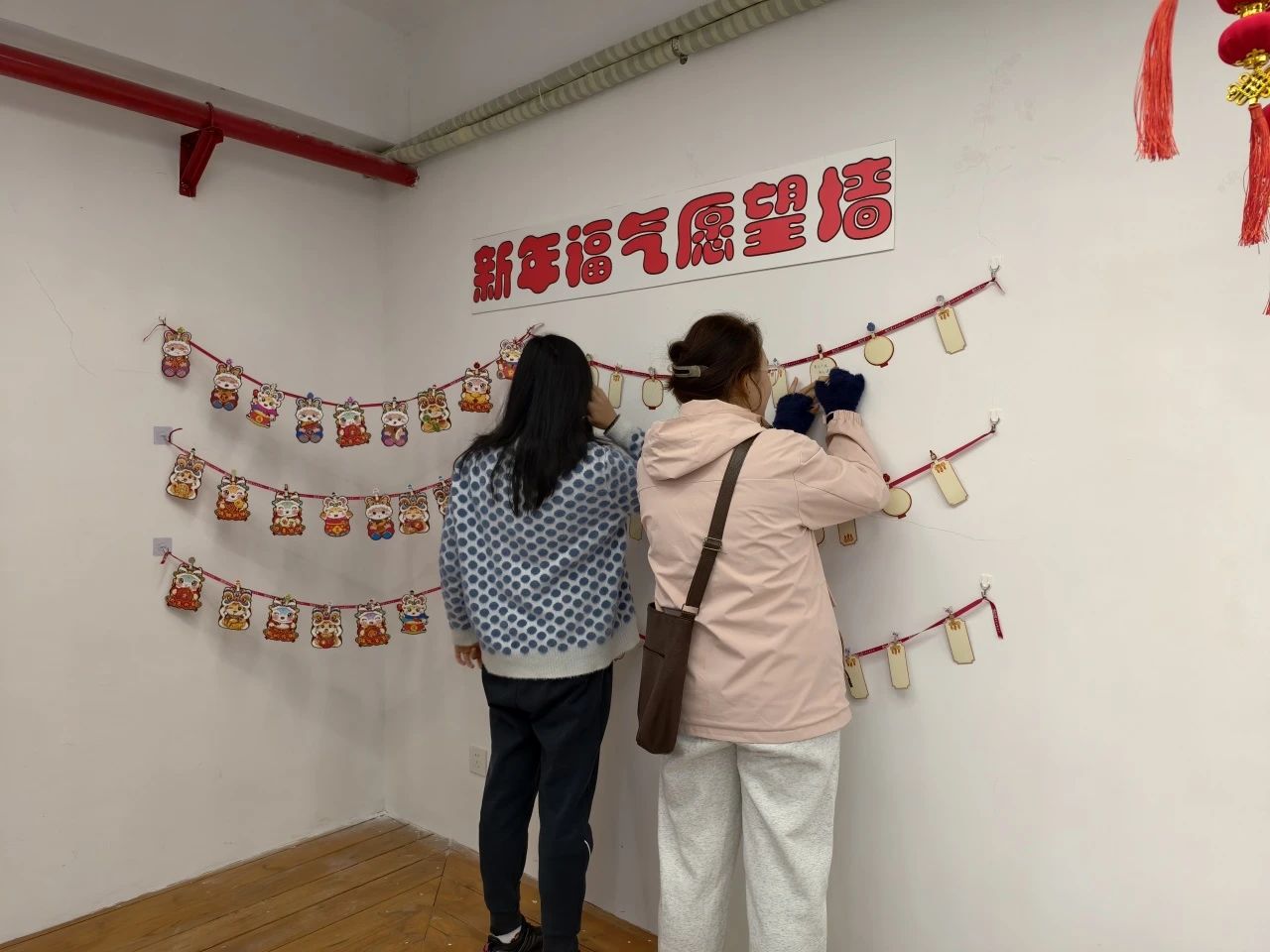 “庆元旦·迎新年”活动在14号楼“一站式”学生社区举行。活动现场张灯结彩,红纸、笔墨、心愿墙与祝福红包一应俱全,等待同学们的热情到来。