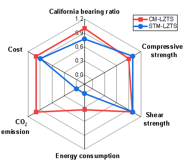 根据可持续性分析,STM-LZTS在成本、CO₂排放和能源消耗方面显著优于CM-LZTS。总的来说,使用STM-LZTS作为路基填料在满足工程性能、耐久性和优越的可持续性方面具有广阔的前景,其可作为一种环保的道路材料来使用,并显著促进实现碳中和目标。