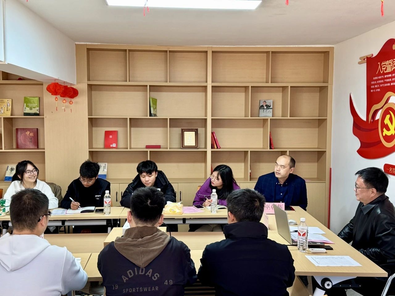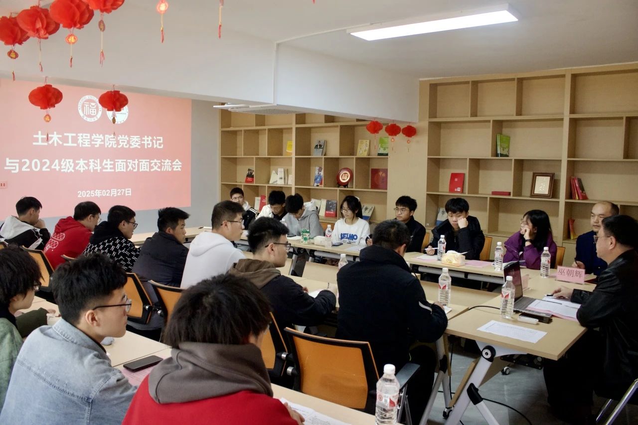 党委书记吴唐风、副书记巫朝辉一行来到铜盘校区,在一站式社区服务中心党建活动室与2024级本科生亲切交流、面对面座谈,2024级辅导员徐剑、潘雨璐和2024级新生代表共同参会。