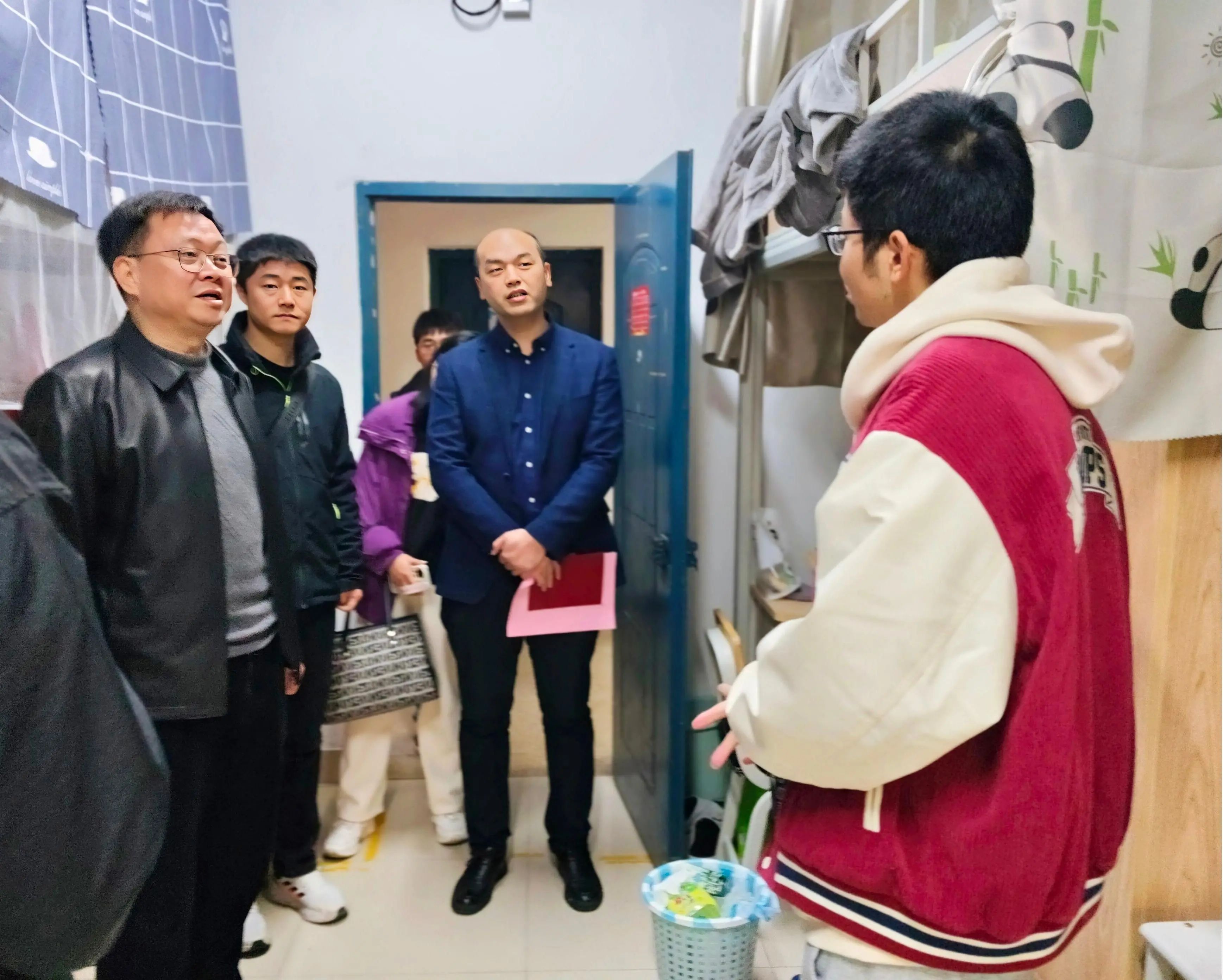 座谈会后,吴唐风书记和巫朝辉副书记在辅导员的陪同下,一同到八号楼学生公寓实地走访,与土木学子亲切交流,了解新生在铜盘校区的学习生活情况,鼓励同学们勤于劳动,友好相处,构建温馨和谐的土木之家。