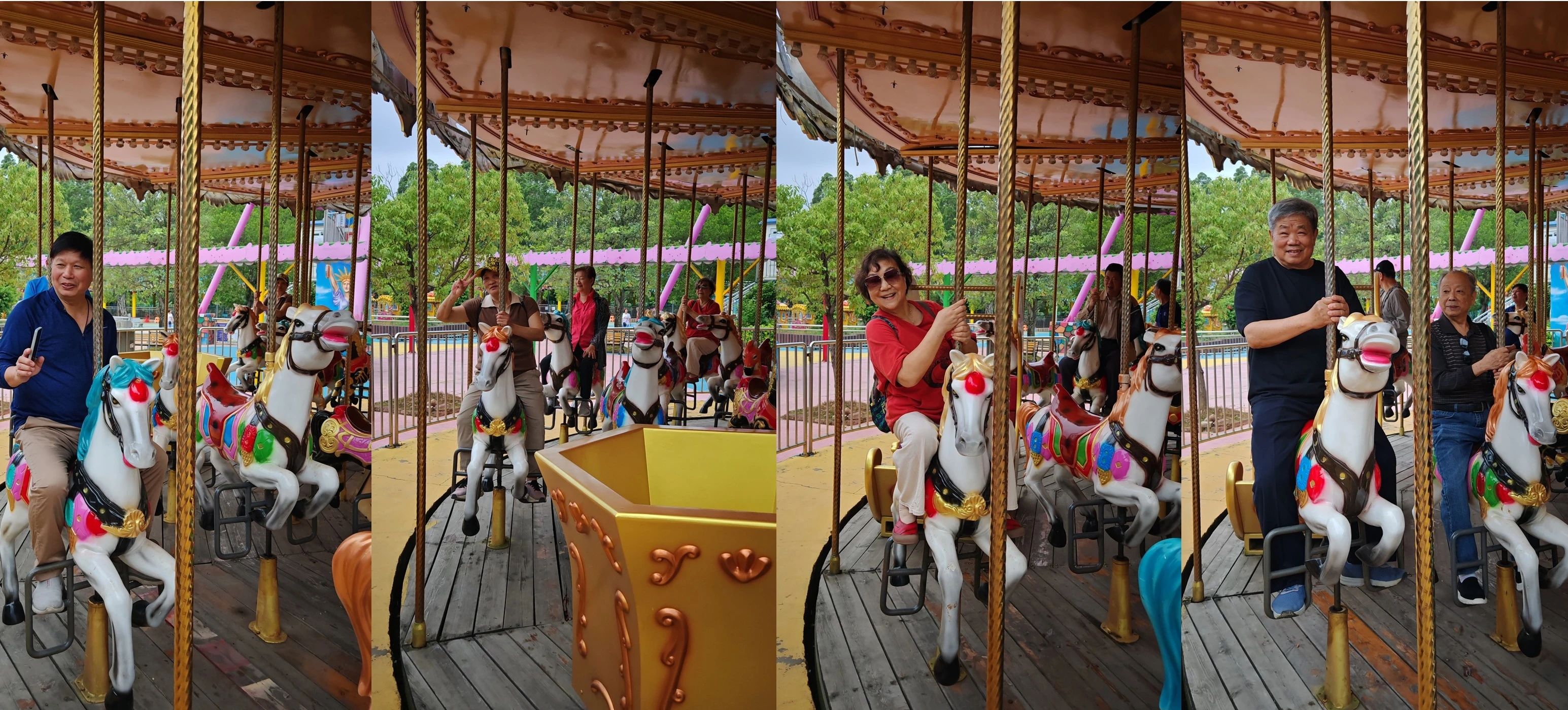 迈过长安桥,便是一片充满欢乐与活力的游乐园。虽然退休教职工们年岁已高,但在这些游乐设施面前,他们的笑容却依旧如孩子般纯真灿烂,尽情享受着春日的欢乐与童趣,展现出对生活满满的热爱之情。