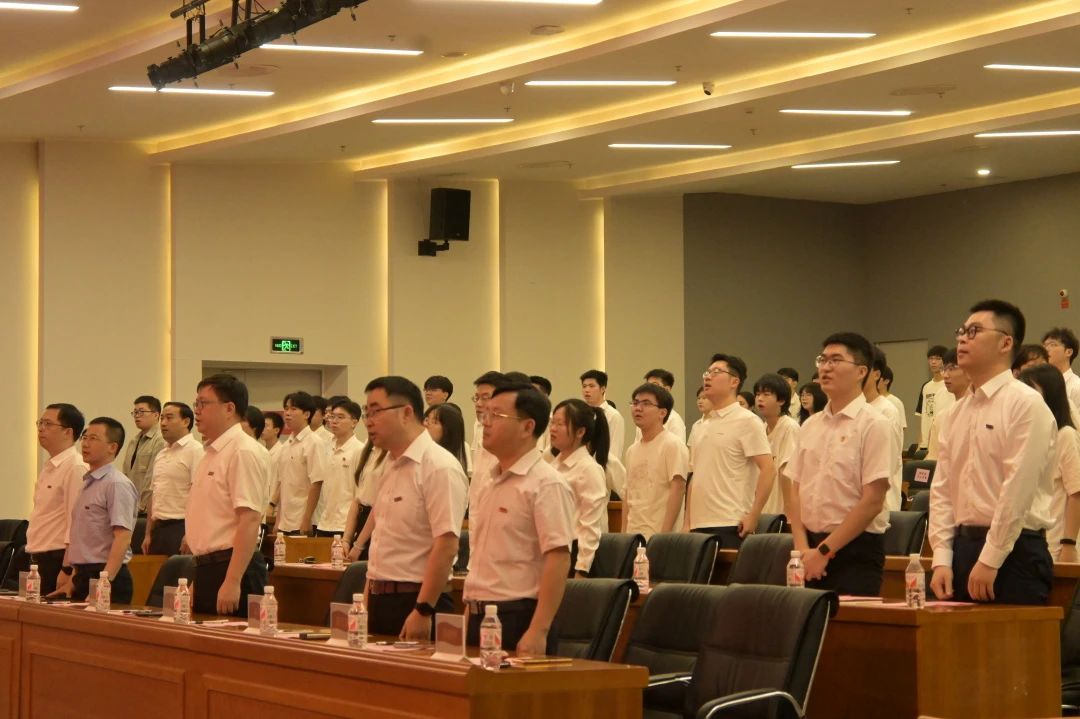 大会在庄严激昂的旋律中拉开序幕。与会人员全体肃立,奏唱国歌。
