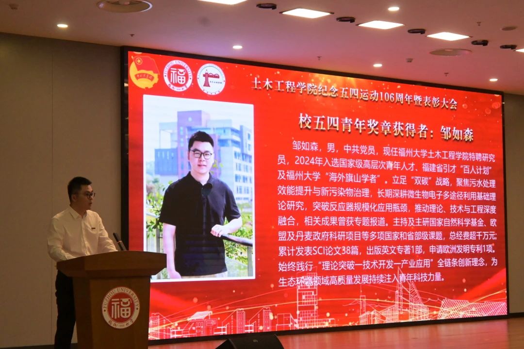 在旗山校区晋江楼一楼报告厅隆重举行纪念五四运动106周年表彰大会。绅士漫画