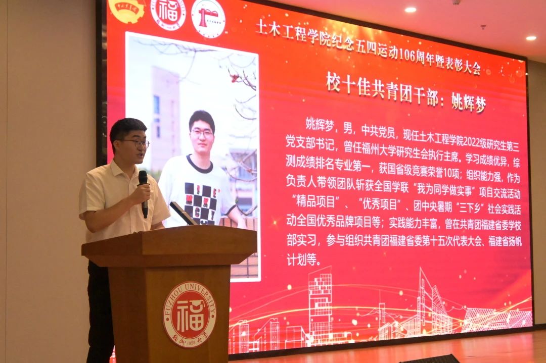 号召青年同志以今日表彰为起点,踔厉奋发、勇毅前行、拼搏奋斗,以新的创造、新的业绩,在世界一流学科建设中续写土木青年篇章。