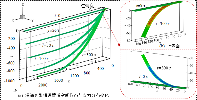 本研究提出一种结合向量式有限元理论与等效梁质点方法的深海S型铺设管道精细化模型,可准确模拟铺设过程中管道整体静动力行为与局部受力变形,揭示了管径与托管架滚轮间距对管道表面应力应变分析的影响规律,本研究为深海S型管道铺设优化设计提供了理论依据,对未来极端海洋条件下深海管道铺设设计具有重要参考价值。