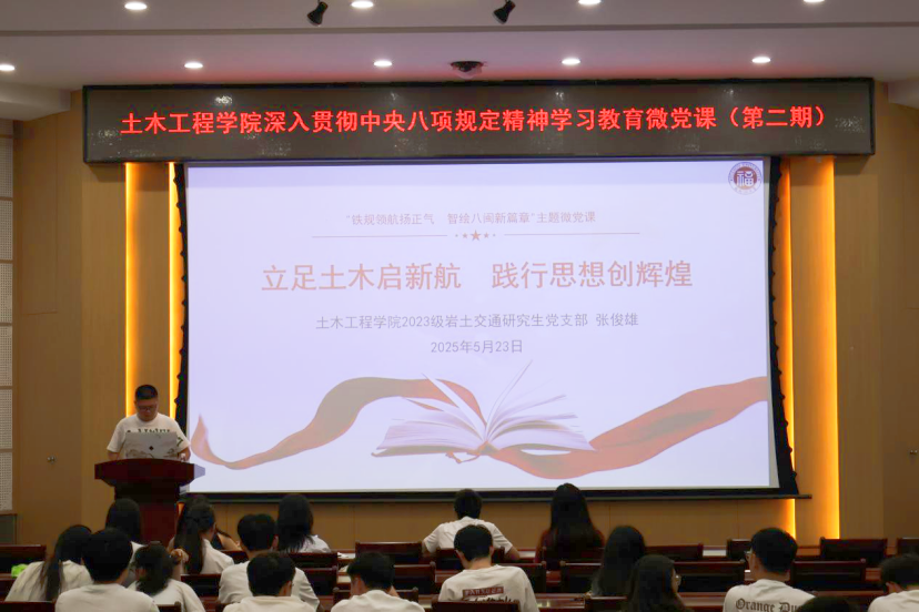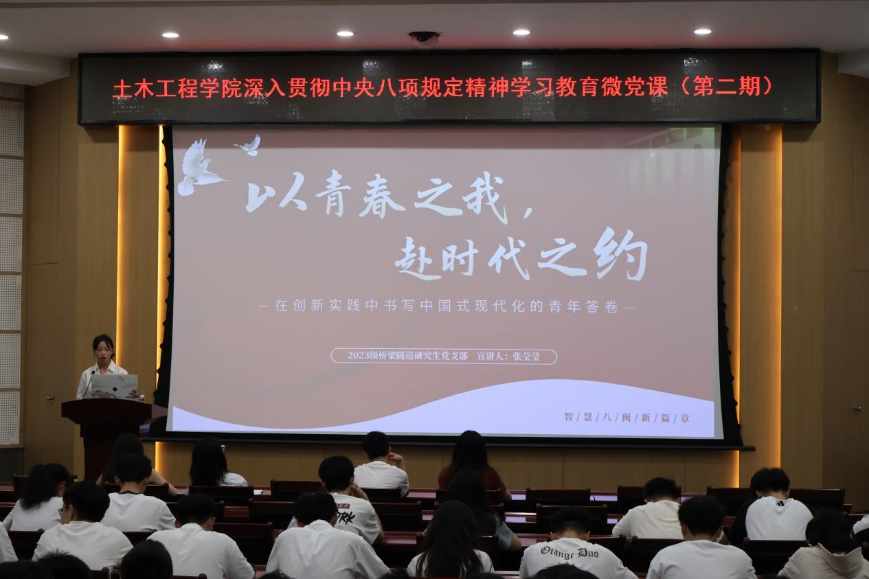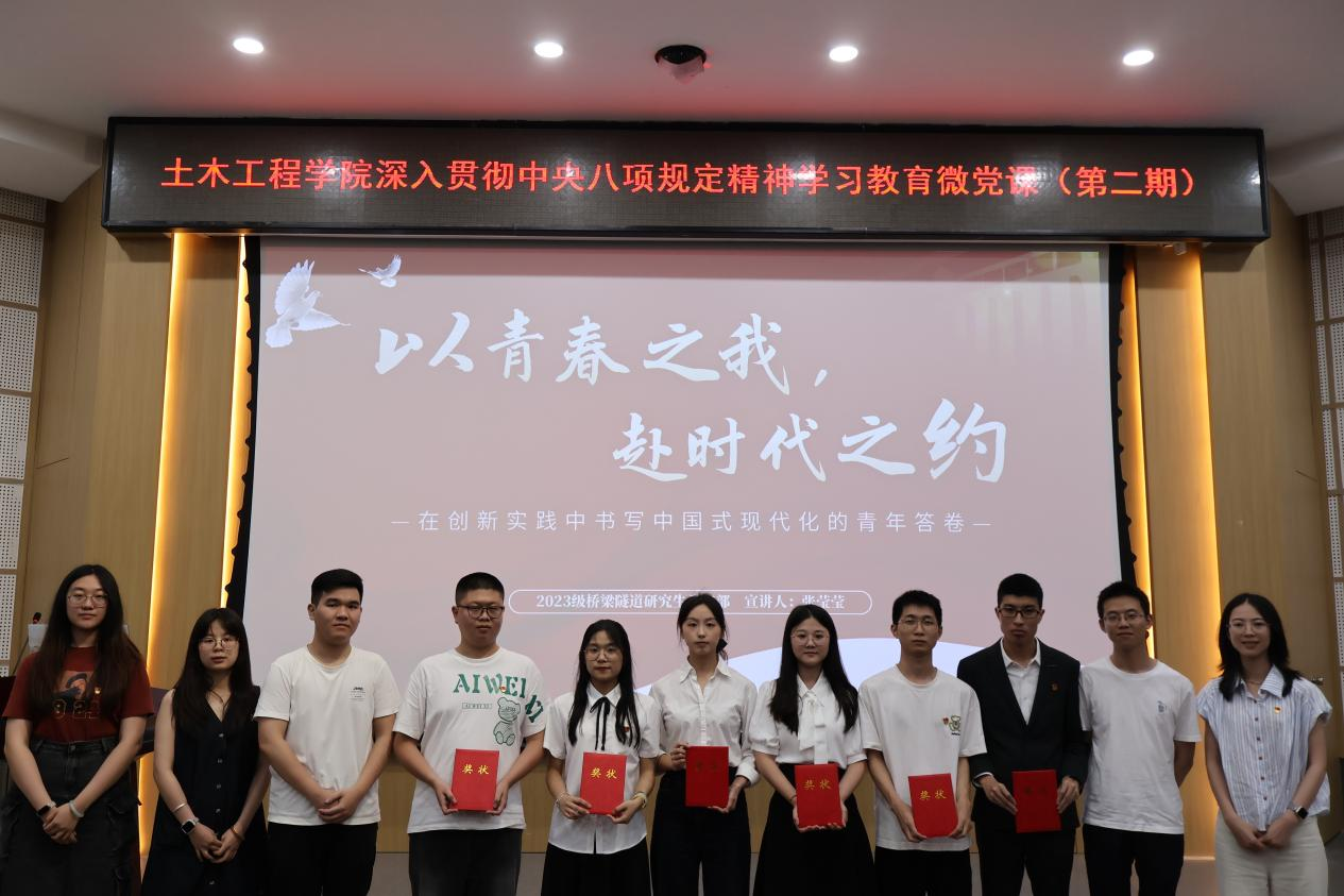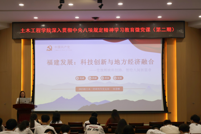 举办第二期深入贯彻中央八项规定精神学习教育微党课比赛。各年级辅导员、2023级研究生党支部书记、研究生会骨干成员及2023级全体研究生党员参与了活动。