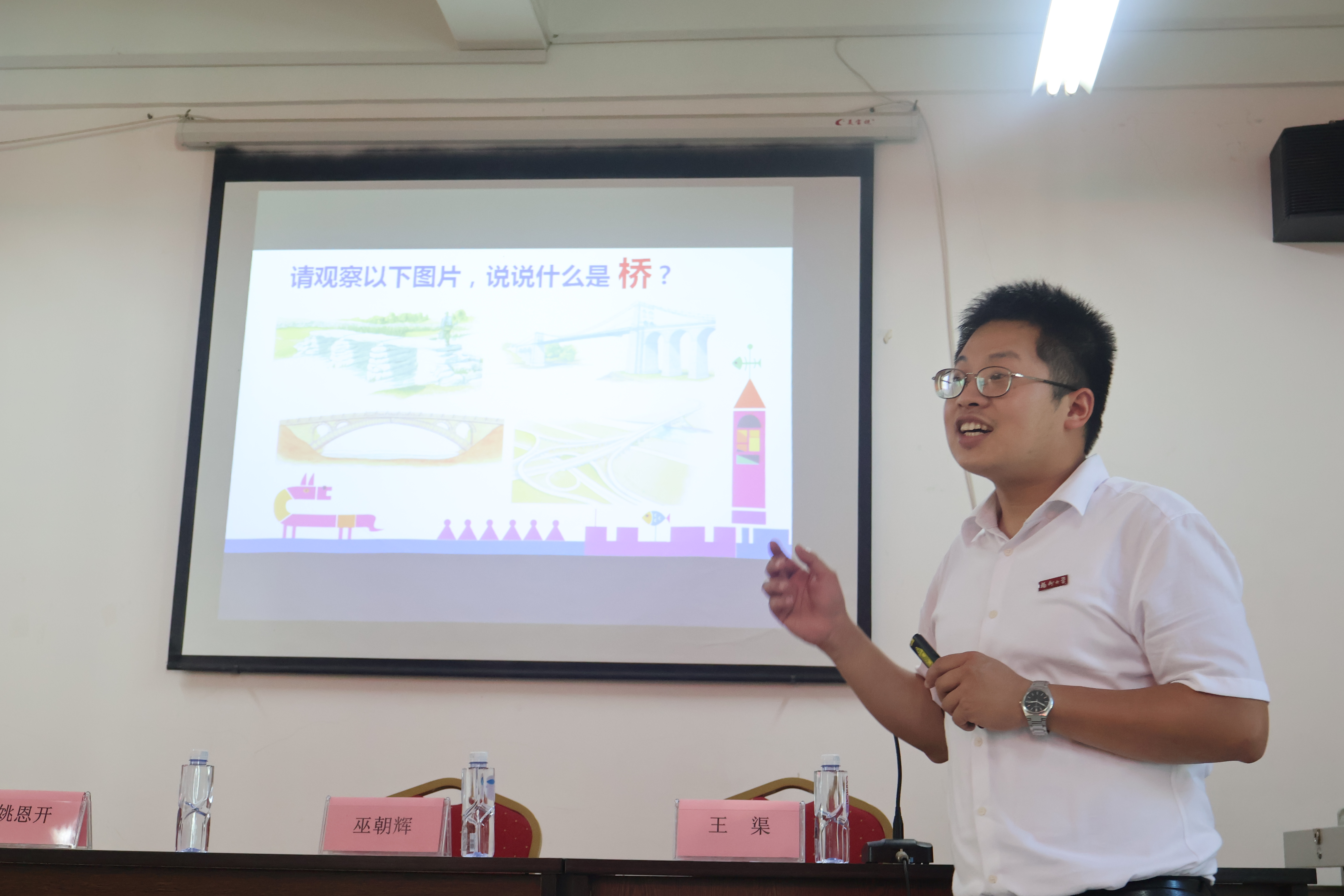 实验教学与服务中心党支部书记王渠以“瞧,桥”为主题,从“什么是桥”“桥的结构”“桥的种类”及“身边的桥梁”四个方面,以生动语言与丰富图例激发学生兴趣,现场互动热烈,掌声不断。