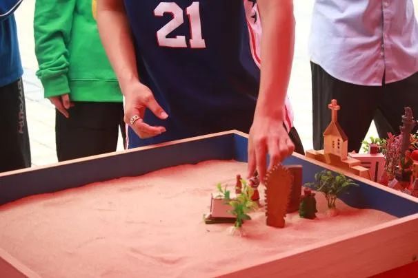 沙盘,又称“非言语的心理治疗”。以无意识理论为基础,注重共情与感应。宛如《盗梦空间》中的潜意识世界,看似随意摆放的沙具后其实隐含着潜意识动机,折射着内心世界。从微缩的模具中放大自己的细微,从蛛丝马迹中窥探自我的内心。在这里同学们认识到不一样的自己。