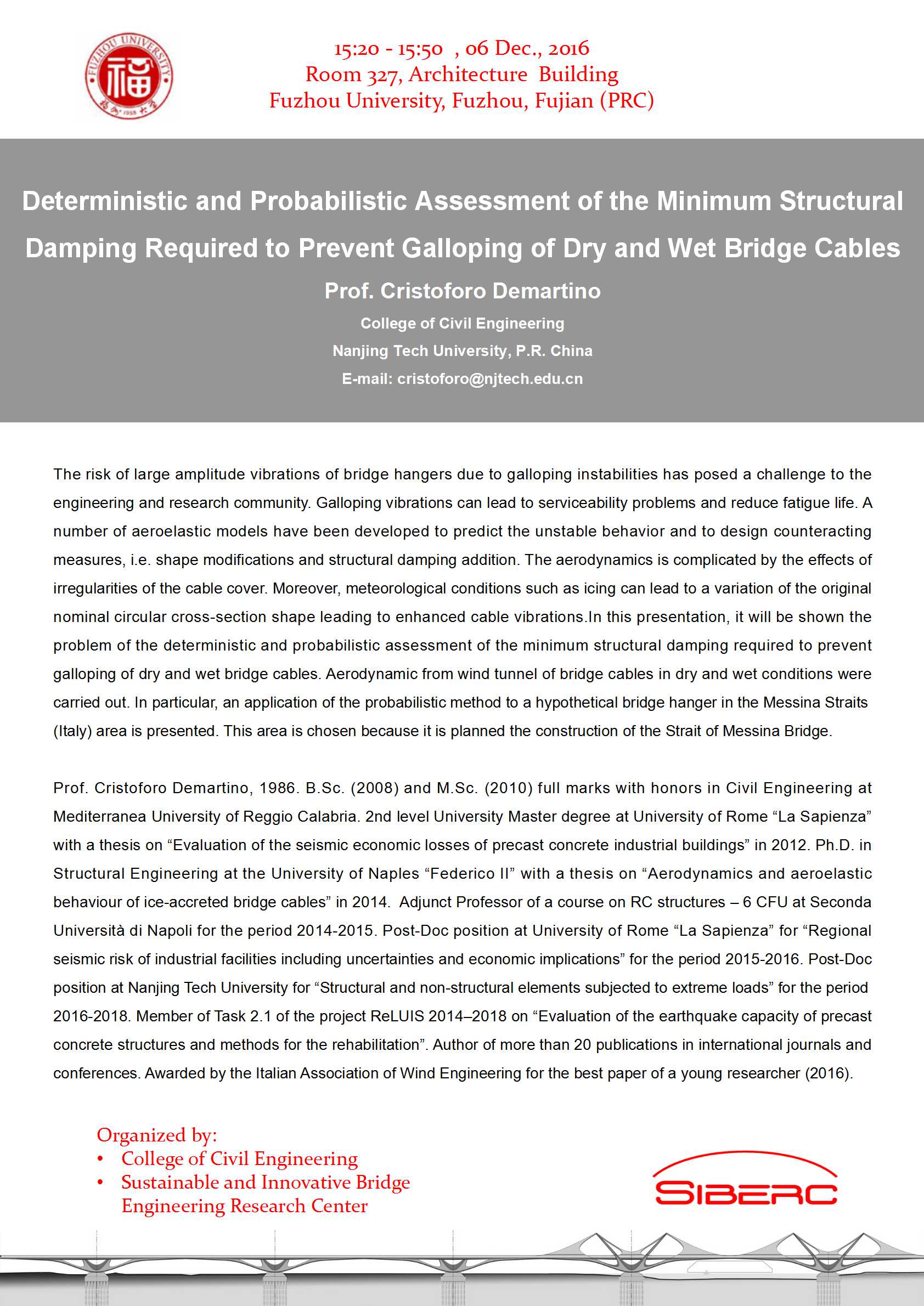 下一篇:Giuseppe Quaranta 教授 讲座:“Smart Monitoring of Structures and Infrastructures”