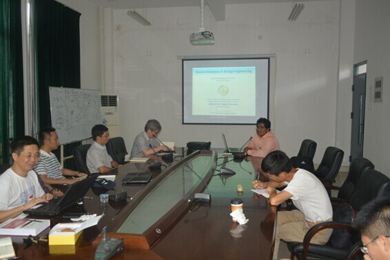 ,他根据自身研究经验,结合实例,给土木学院的老师和同学就结构的可持续发展做了精彩讲座。讲座包括两个部分:桥梁工程的研究新进展和耐久性桥梁的无缝化研究。讲座结束后,参加讲座的师生纷纷提出感兴趣的问题,双方展开热烈的讨论。