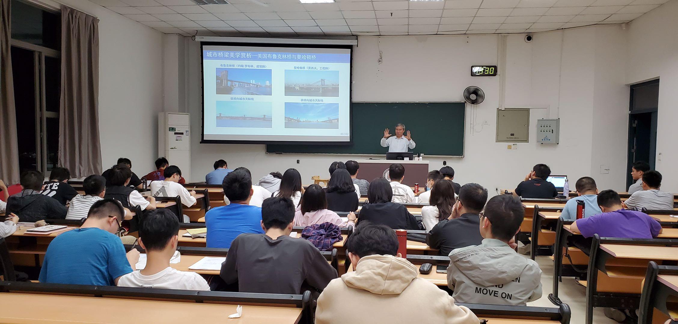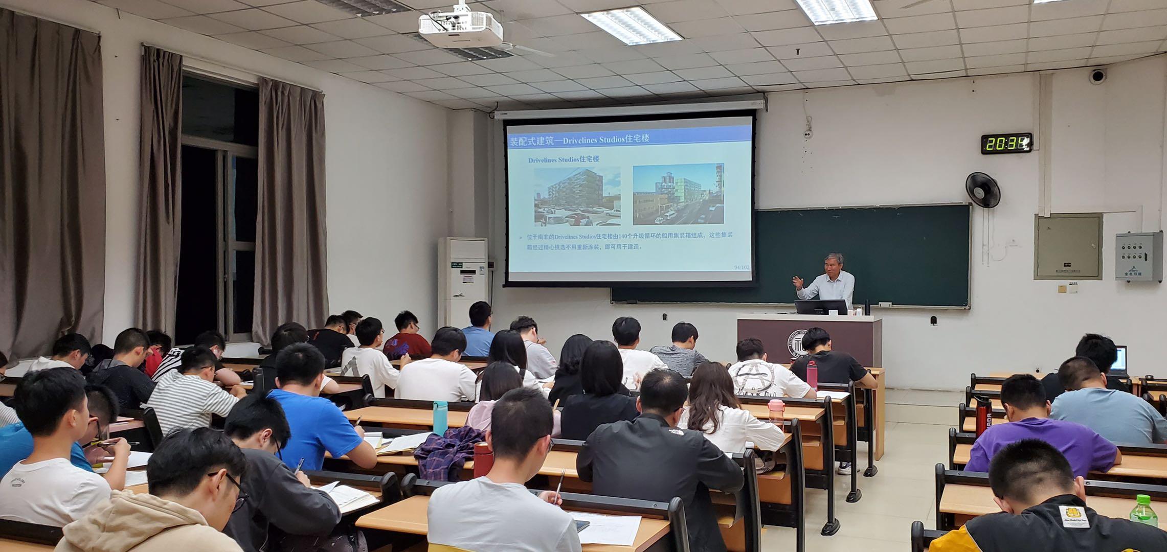 特聘教授陈宜言设计大师为土木工程专业中加班40多名大四学生做学科前沿介绍讲座。