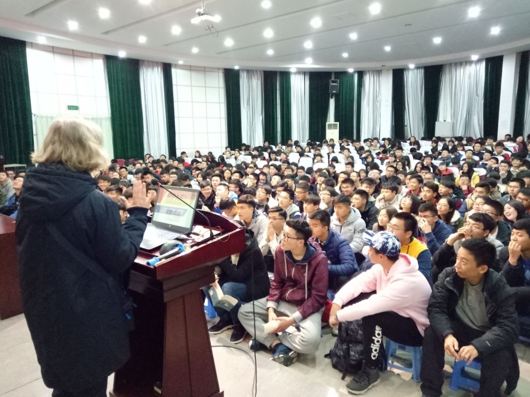 本次宣讲会邀请来自福建省·莱茵兰-普法尔茨学院的主任Feege老师为同学们做了相关讲解。她首先介绍了莱茵兰普法尔茨学院的历史和现状,以及中德项目为同学们提供的良好契机;然后又详细讲解了中德“5+5”合作办学项目的课程培养计划,并着重介绍了同学们关心得费用问题。Feege老师和蔼耐心的讲解让同学们对该项目有了初步的了解。Feege老师指出,经过该项目培养的学生往往具备较强的自信和出色的自立能力。随后,即将于2018年4月初前往凯泽斯劳滕工业大学留学的六位同学上台为2017级同学们做了进一步介绍,他们结合自身经历,从学生的角度出发,介绍了相关课程进度、难度、在德国生活的日常花费和该项目的优势等内容,并热心地回答了同学们提出的各种疑问。