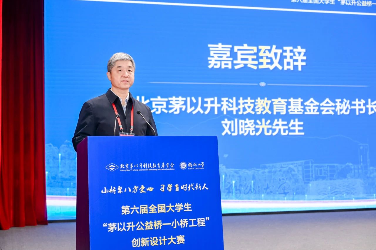 开幕式最后,北京茅以升科技教育基金会秘书长刘晓光致辞。他希望“茅以升公益桥——小桥工程”创新设计大赛成为每位同学展示创新思维、动手能力和协作精神的平台,成为大家展示自身社会责任感的平台,成为帮助大家梦想起飞的平台。