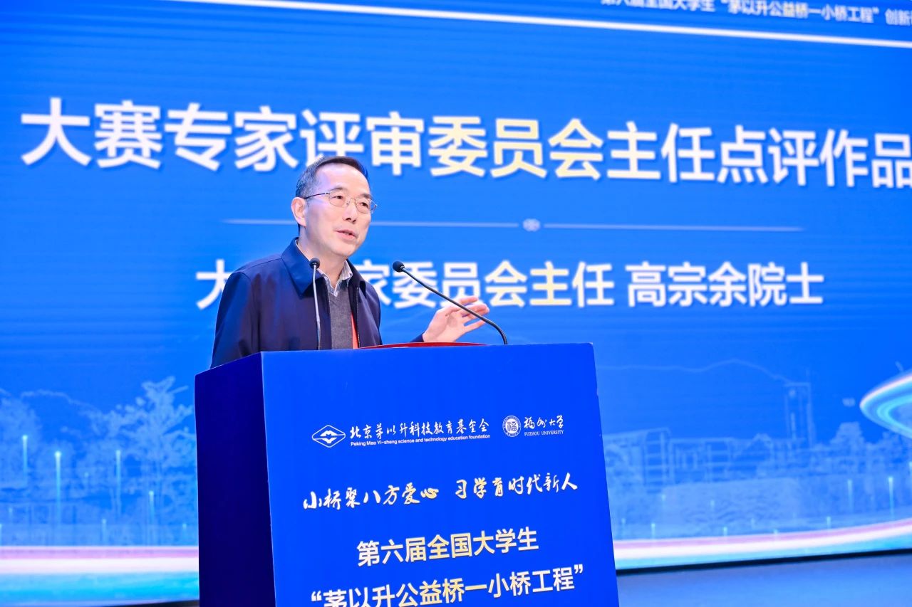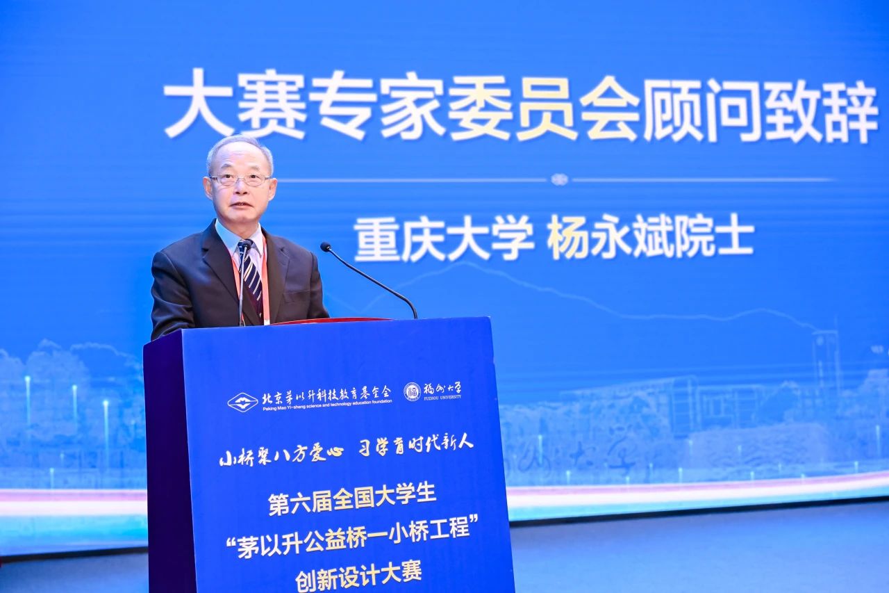大赛专家委员会主任高宗余院士点评参赛作品,对参赛作品的创新性、公益性表示肯定。大赛专家委员会顾问杨永斌院士致辞表示,希望通过小桥工程创新设计大赛,继续传承茅以升先生爱国、奉献、关注民生、培养新人的教育理念和工程精神。